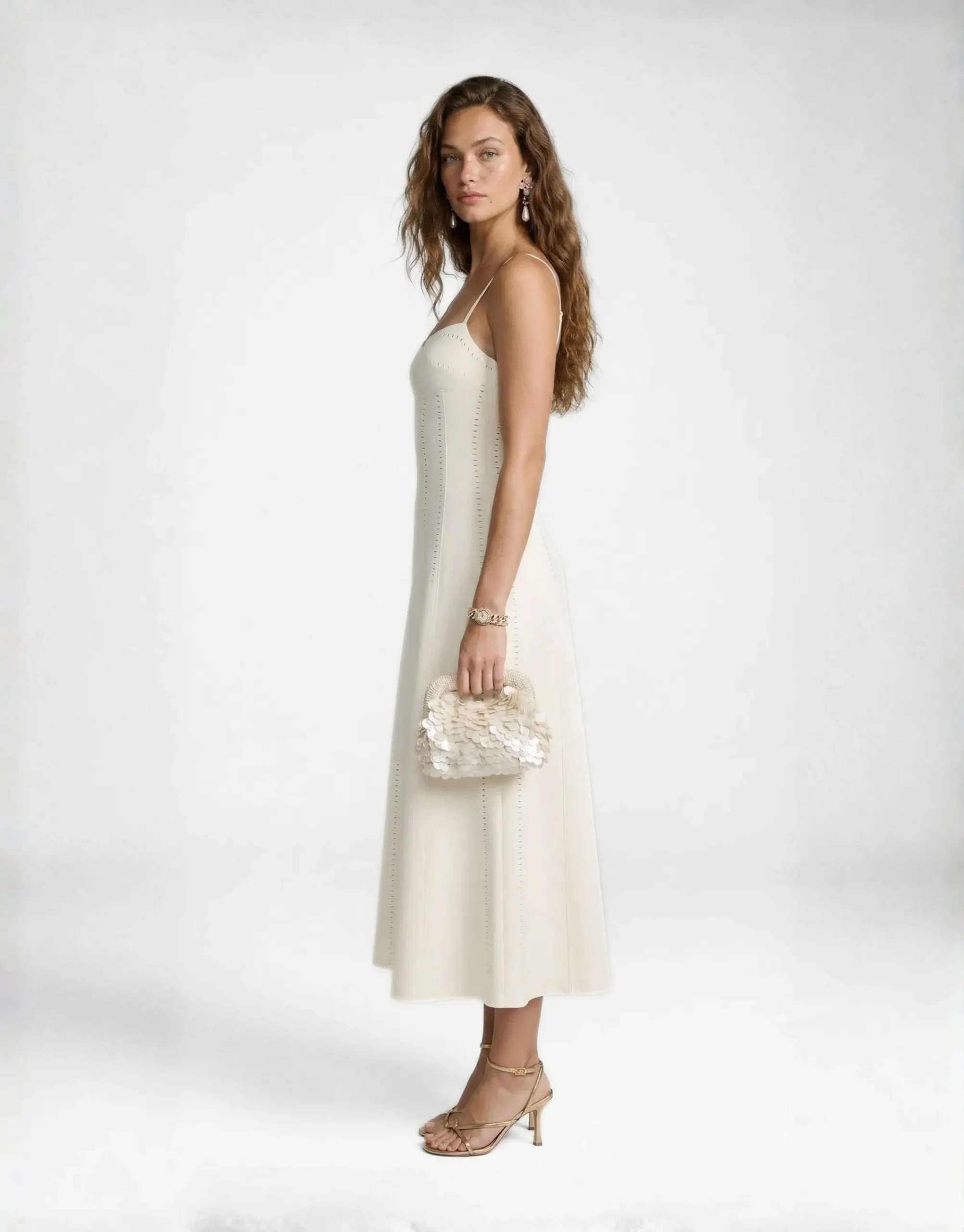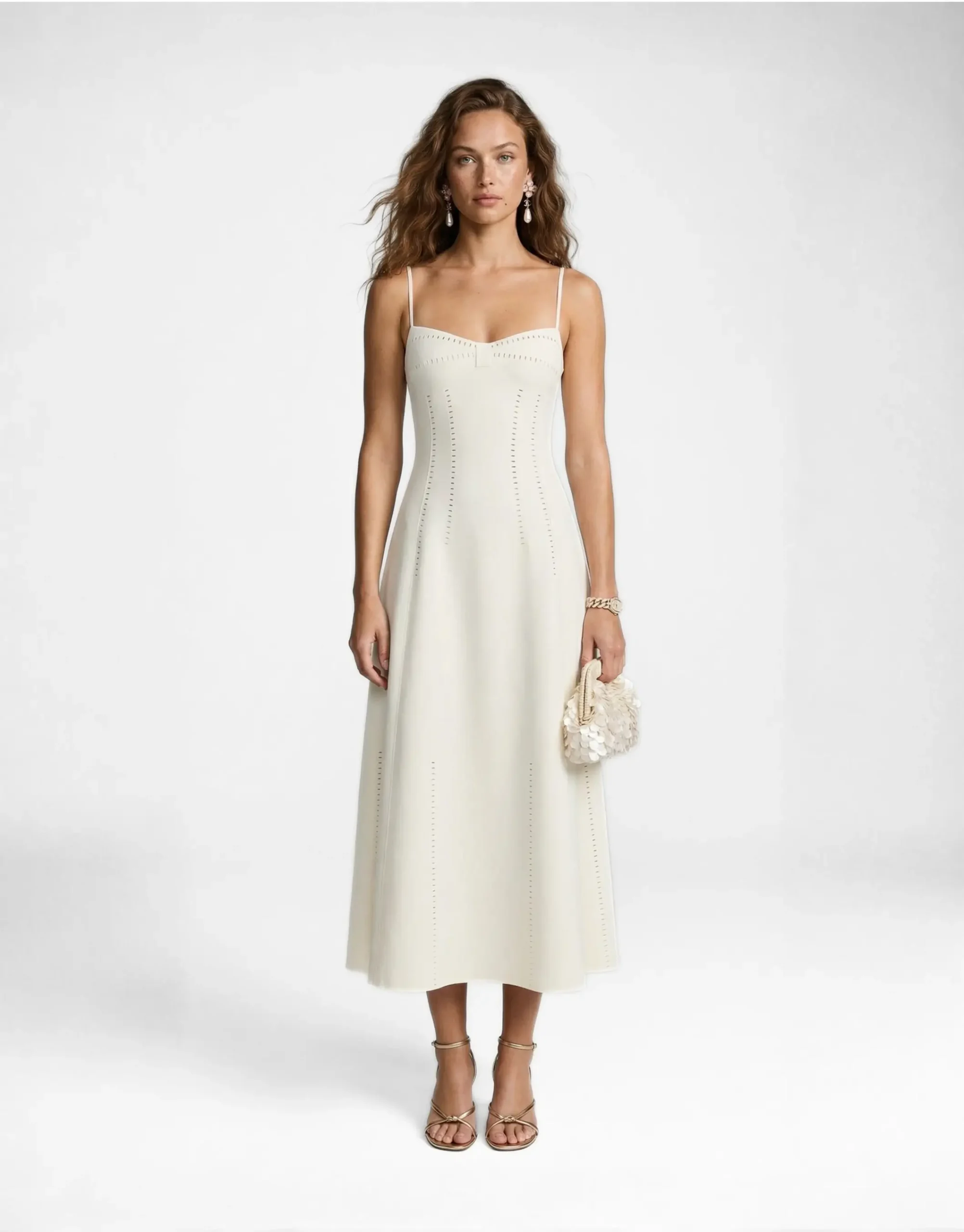 Ivory Pointelle A-Line Midi